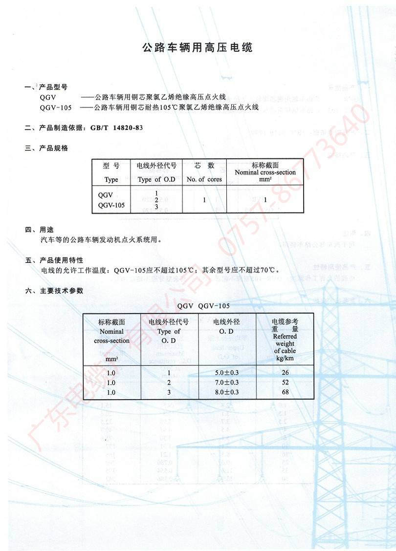 公路車(chē)輛用高壓電纜