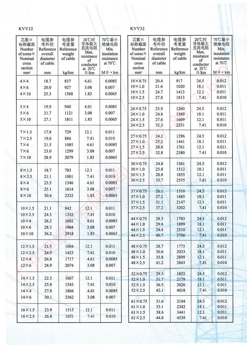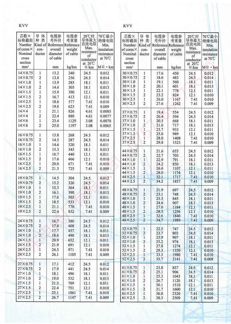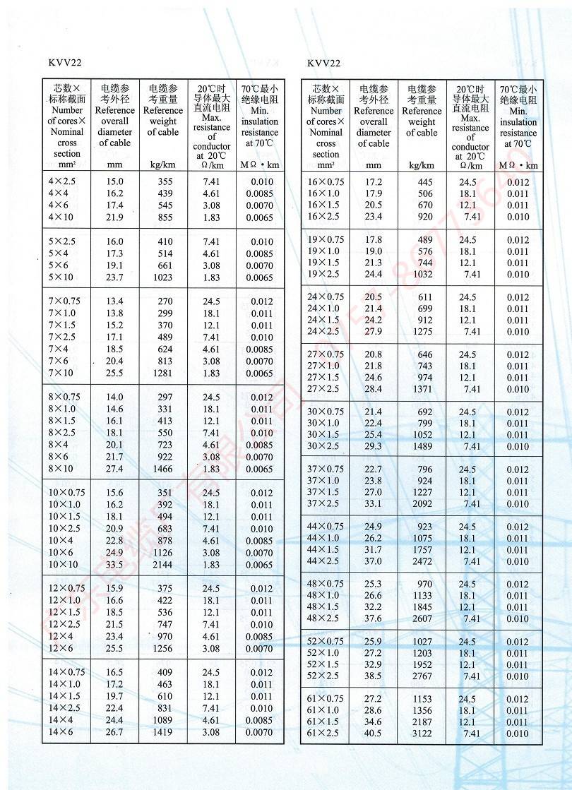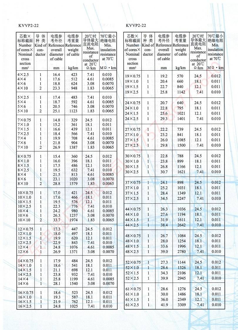 聚氯乙烯絕緣和聚氯乙烯護套控制電纜