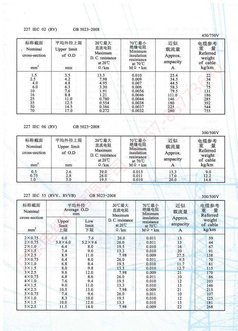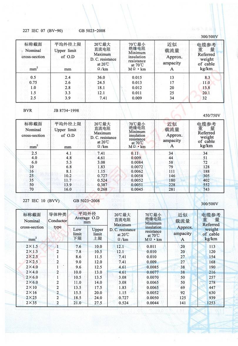 450 750V及以下聚氯乙烯絕緣電纜(電線)